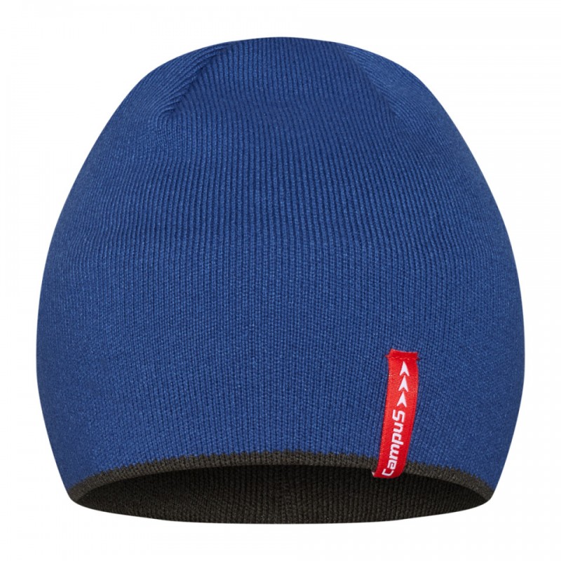 Czapka Campus w intensywnym niebieskim kolorze. Wykonana w 100% z akrylu, ciepła i wygodna, z prążkowaną strukturą, kontrastową zieloną podszewką i czerwonym logo. Idealna na sezon jesień–zima.