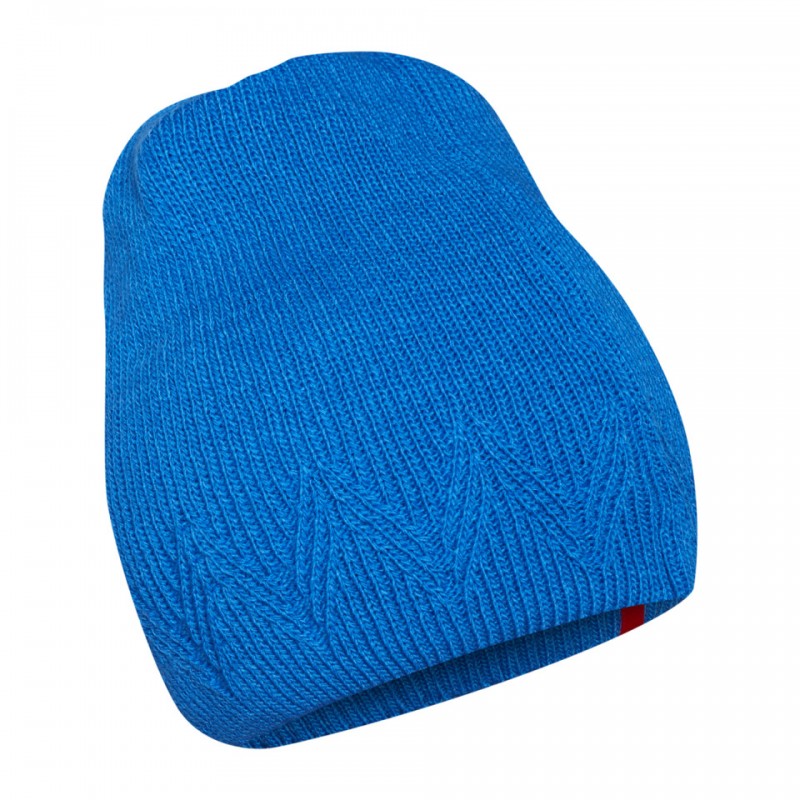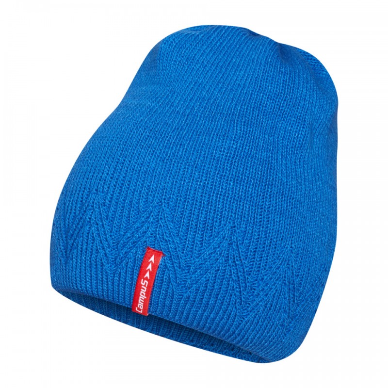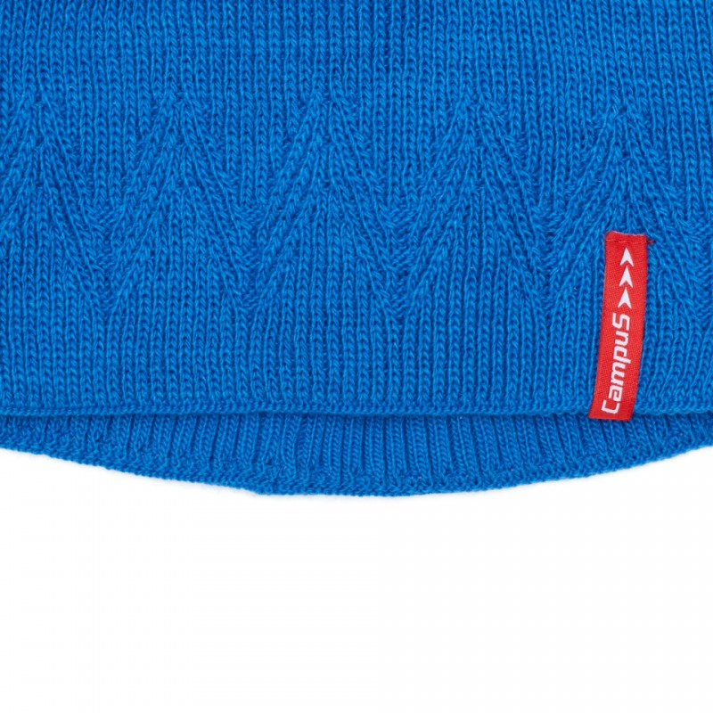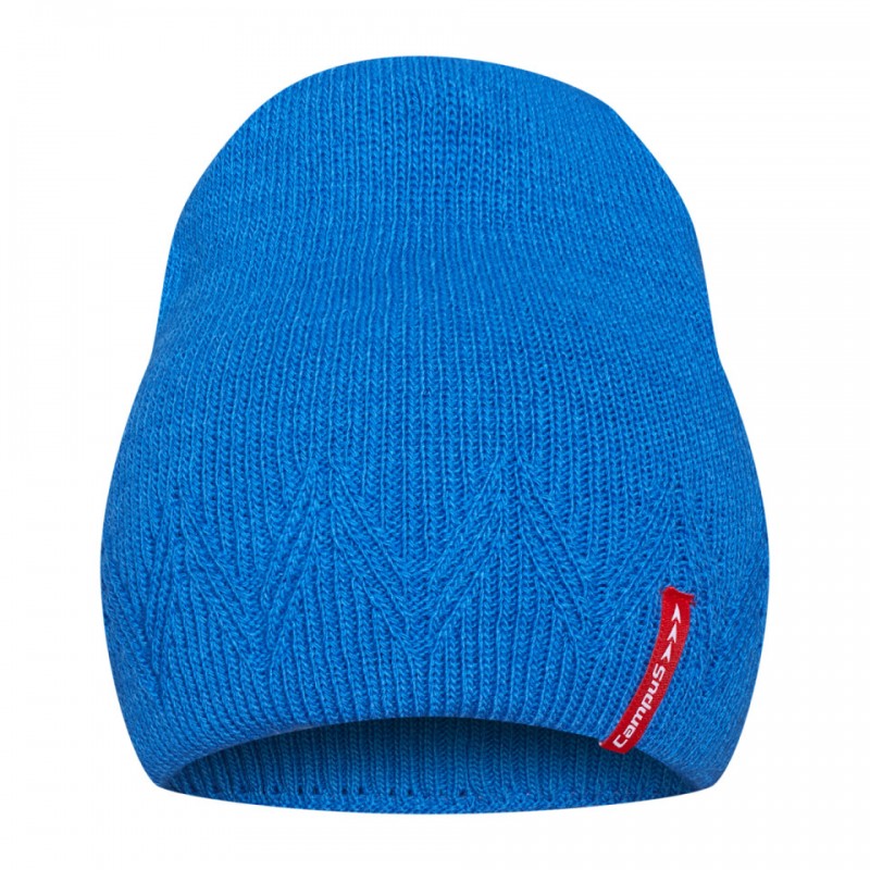 Damska czapka w intensywnym błękicie, wykonana w 100% z akrylu. Miękka, ciepła i wygodna, z nowoczesnym wzorem zygzaków i czerwonym logo Campus. Idealna na jesień i zimę.