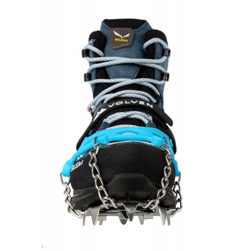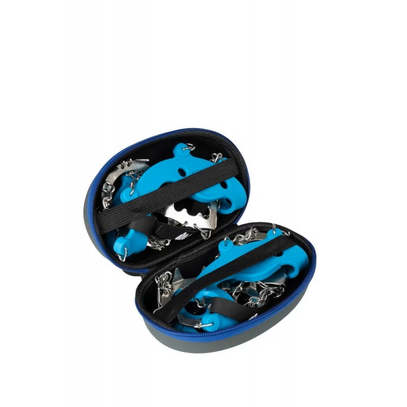Wytrzymałe raczki z 13 stalowymi zębami wykonane z odpornego tworzywa sztucznego i stali nierdzewnej w kolorze niebieskim. Rozmiar 39-41