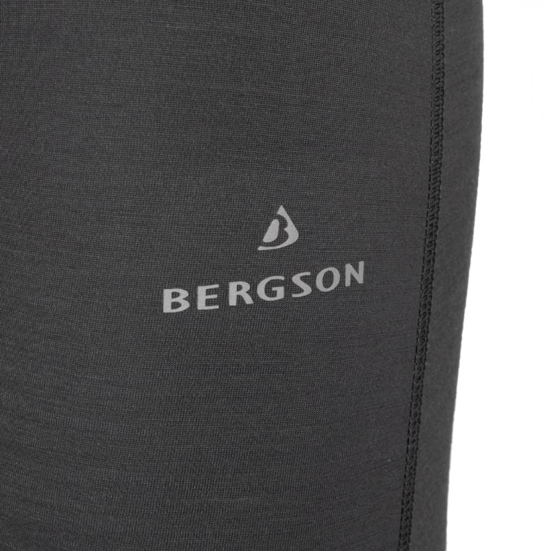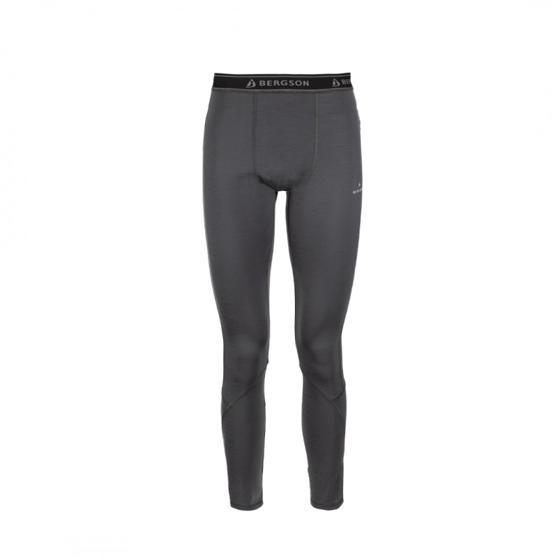 Męskie legginsy termiczne Bergson Lanapura wykonane z mieszanki 50% wełny merino i 50% poliestru. Zapewniają doskonałą termoregulację, szybkie odprowadzanie wilgoci i wysoki komfort. Idealne jako pierwsza warstwa pod spodnie narciarskie, trekkingowe oraz do codziennego noszenia zimą.