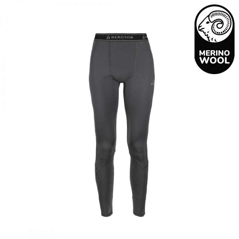 Damskie legginsy termiczne Bergson Lanapura wykonane z mieszanki 50% wełny merino i 50% poliestru. Zapewniają ciepło, szybkie odprowadzanie wilgoci i pełną swobodę ruchów. Idealne jako pierwsza warstwa pod spodnie trekkingowe, narciarskie oraz do codziennego użytkowania zimą.