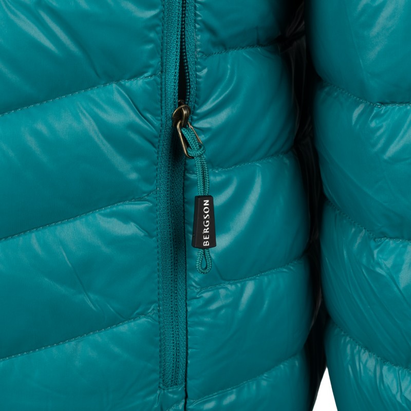Lekka i ciepła kurtka puchowa BERGSON CELSIUS została stworzona z myślą o aktywnych kobietach. Naturalny puch 90/10 (650 CUIN) gwarantuje świetne właściwości grzewcze przy minimalnej wadze. Po złożeniu kurtka zajmuje niewiele miejsca – idealna w każdą podróż. Doskonała na górskie wędrówki, podróże i codzienne użytkowanie jesienią i zimą.